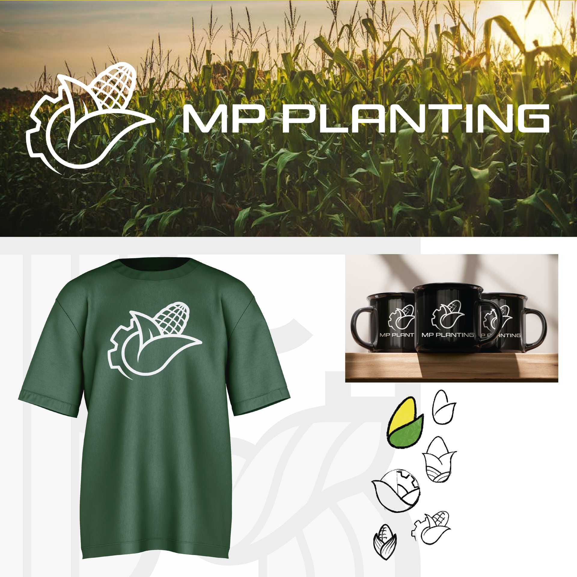 Das Logo für Melf, Händler für Mais-Aussaatmaschinen, vereint technische Präzision mit landwirtschaftlicher Leidenschaft. Das Design spiegelt sowohl die Expertise im Maschinenbau als auch die tiefe Verbundenheit zur Natur wider – modern, klar und authentisch.